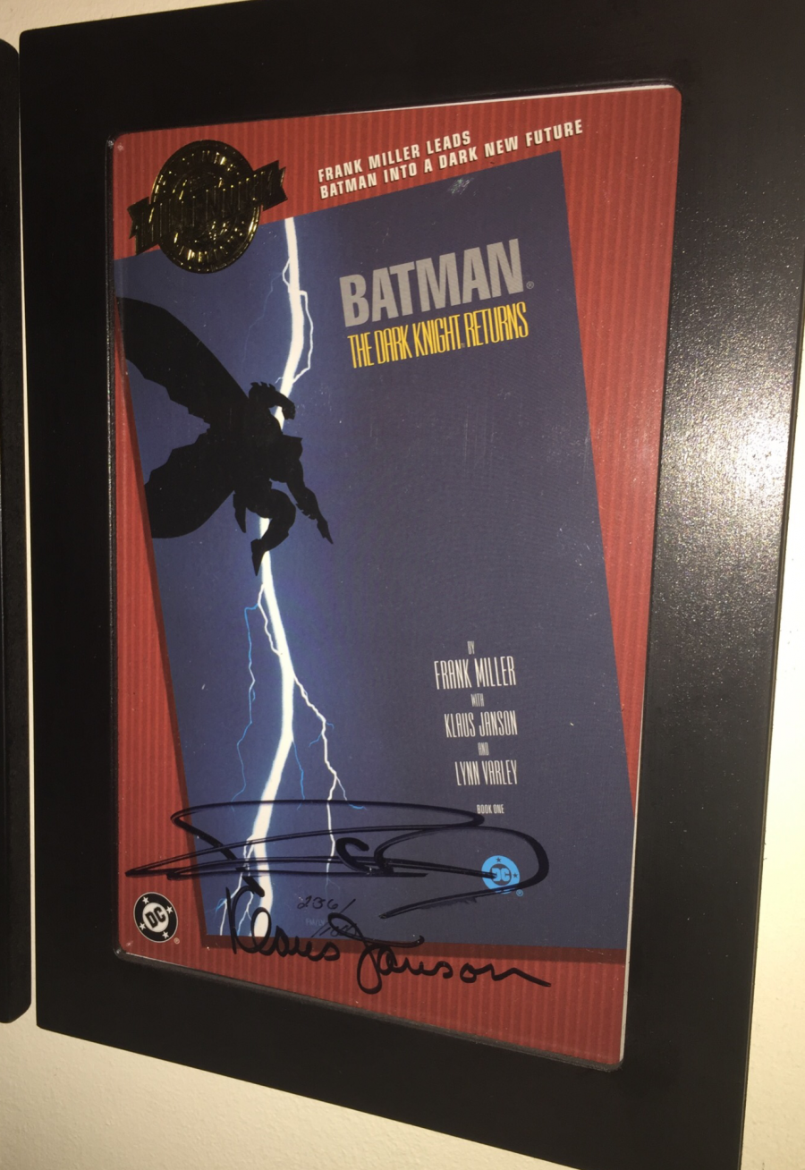 The signature page features the the original art for a prior edition’s signature page. This particular art also inspired the first ever Dark Knight Returns statue (yup, got it, thanks to my not-yet-then-wife, who bought it at Fourth World Comics):